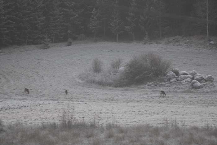 | En bidragande orsak till det stora djurlivet kan vara tillgången på vatten. Här går dräneringen ut från två håll och går sedan i öppet dike vidare. Här är det öppet vatten trots att det varit kallt länge och andra delar av våtmarken är bottenfrusen. Här finns spår från olika fåglar, rådjur och räv. |